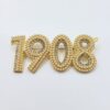 - 1908 Design with Inner Rhinestone Outline: At the heart of the pin, the numbers “1908” are intricately designed and highlighted with a radiant inner outline of rhinestones. These sparkling accents catch the light beautifully, making the pin a standout piece.