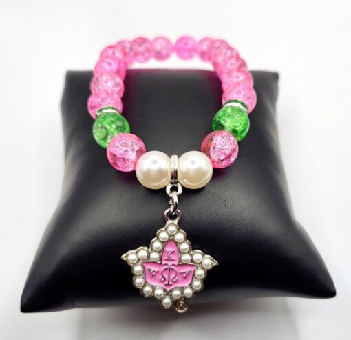 Show your love and pride for the prettiest Sorority there is with our Alpha Kappa Alpha ““20 Pearls Glass bead Charm Bracelet” Bracelet today!