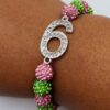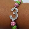 The bracelet features alternating pink and glitter green colors, symbolizing the rich heritage and vibrant sisterhood of Alpha Kappa Alpha. The sparkling glitter accents add a touch of glamour, making this piece a standout accessory for any occasion.