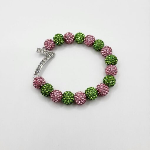 The bracelet features alternating pink and glitter green colors, symbolizing the rich heritage and vibrant sisterhood of Alpha Kappa Alpha. The sparkling glitter accents add a touch of glamour, making this piece a standout accessory for any occasion.