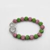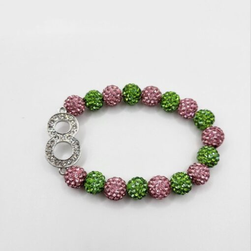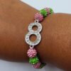 The bracelet features alternating pink and glitter green colors, symbolizing the rich heritage and vibrant sisterhood of Alpha Kappa Alpha. The sparkling glitter accents add a touch of glamour, making this piece a standout accessory for any occasion.