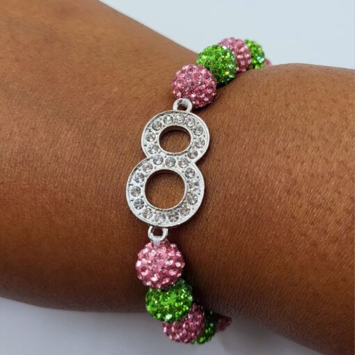 Celebrate your journey and showcase your sorority pride in the most dazzling way possible with our #8 Rhinestone Glitter Bracelet. Designed with elegance and significance in mind, this beautiful accessory is perfect for the distinguished members of Alpha Kappa Alpha Sorority, Inc.