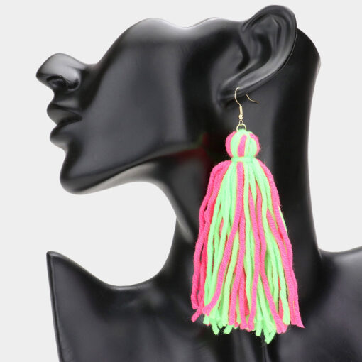 “Color Me Pretty” Yarn Fringe Earrings – Pink & Green