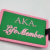 Showcase your dedication to Alpha Kappa Alpha Sorority, Inc. with the vibrant pink and green life member design. The striking colors and sophisticated look make this tag a standout piece that proudly represents your sorority.