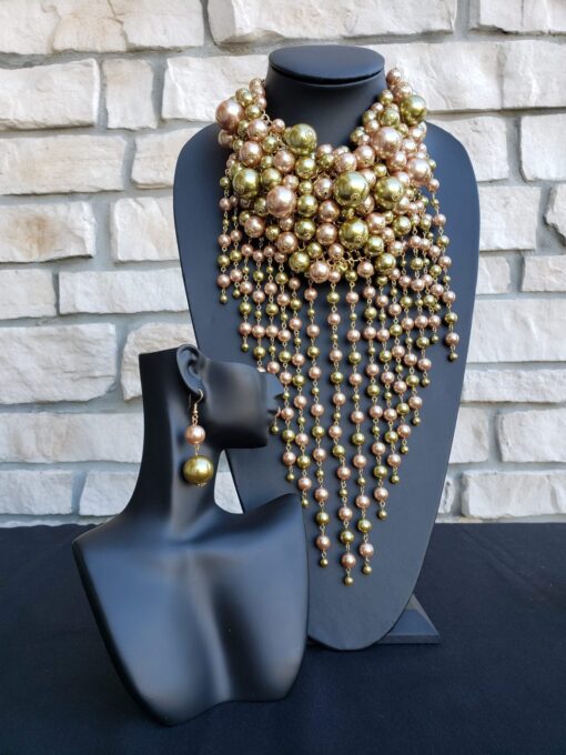 Be the first to review “Pink and Green Fringe Pearl Cluster Necklace Set” Cancel reply