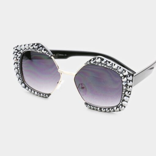 Poppin Pentagon Rhinestone Glasses -Black & Dark Gray