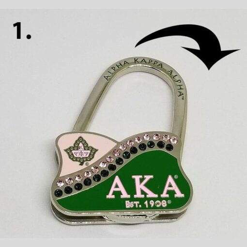 Never suffer the dilemma of “where am I going to put my bag?” when you sit at a table with our Alpha Kappa Alpha Purse Holder Table Hook.