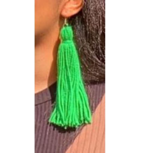 “Color Me Pretty” Yarn Fringe Earrings – Green