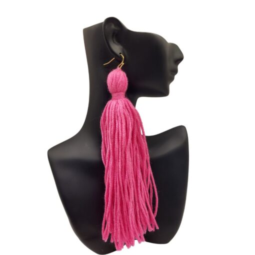 “Color Me Pretty” Yarn Fringe Earrings – Hot Pink